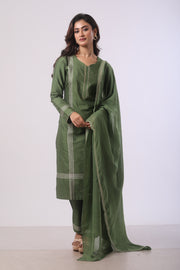 Step into effortless elegance with this Avocado Katan Silk Kurta Set, crafted to make every occasion special. The soft sheen of Katan silk blends beautifully with the delicate drape of a Georgette Organza dupatta, creating a refined and graceful look.