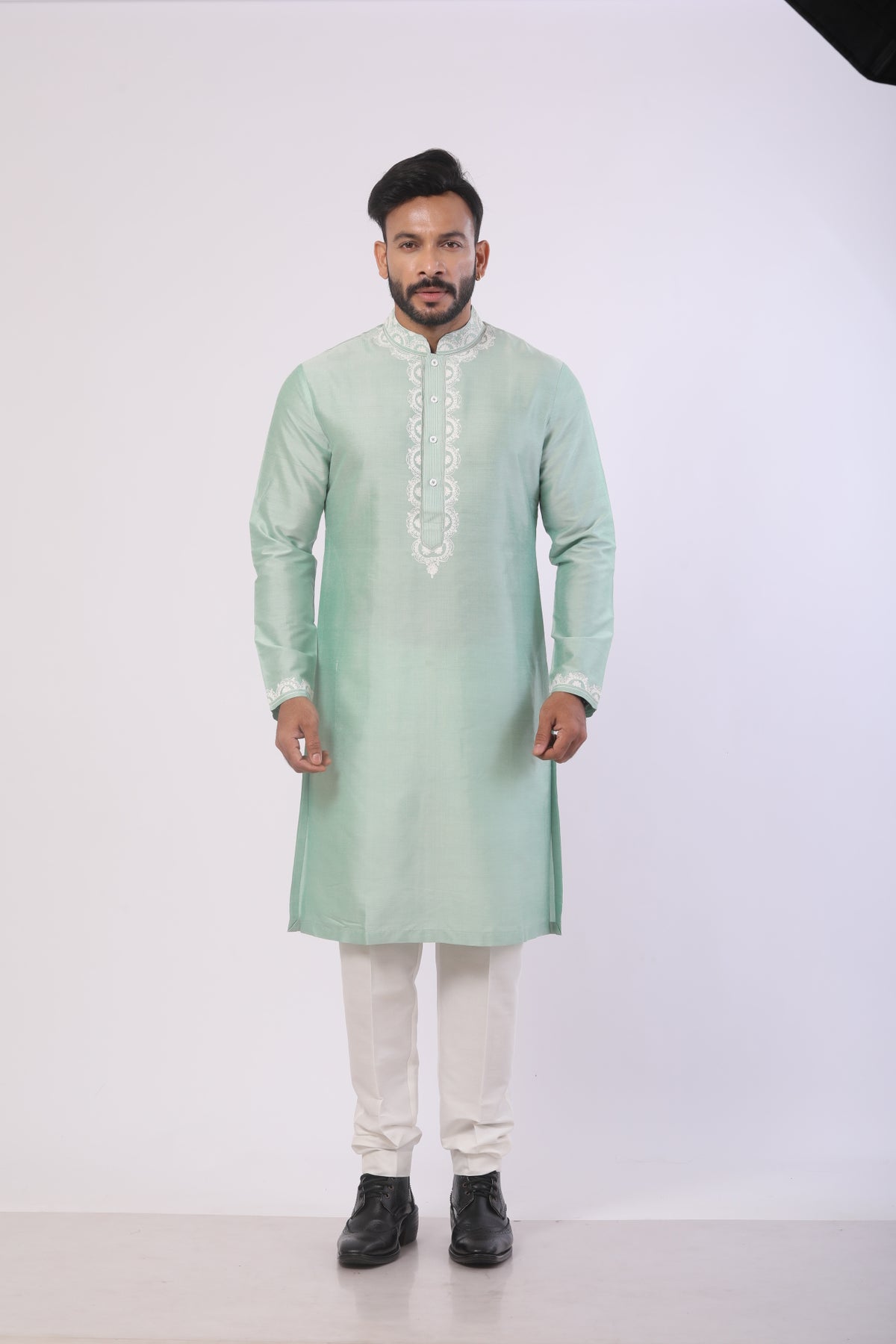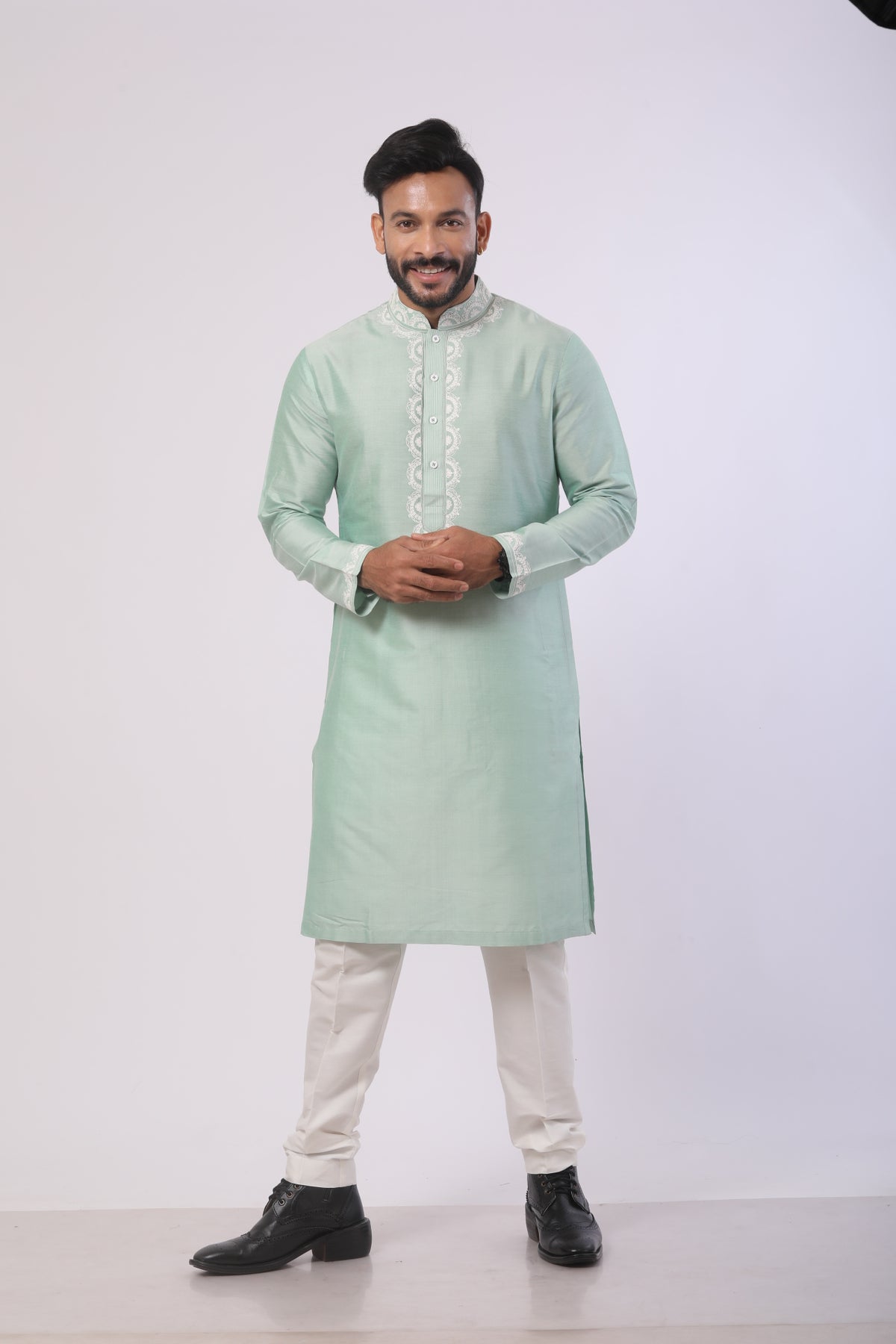 • Refined Mandarin collar and full sleeves for a contemporary ethnic look