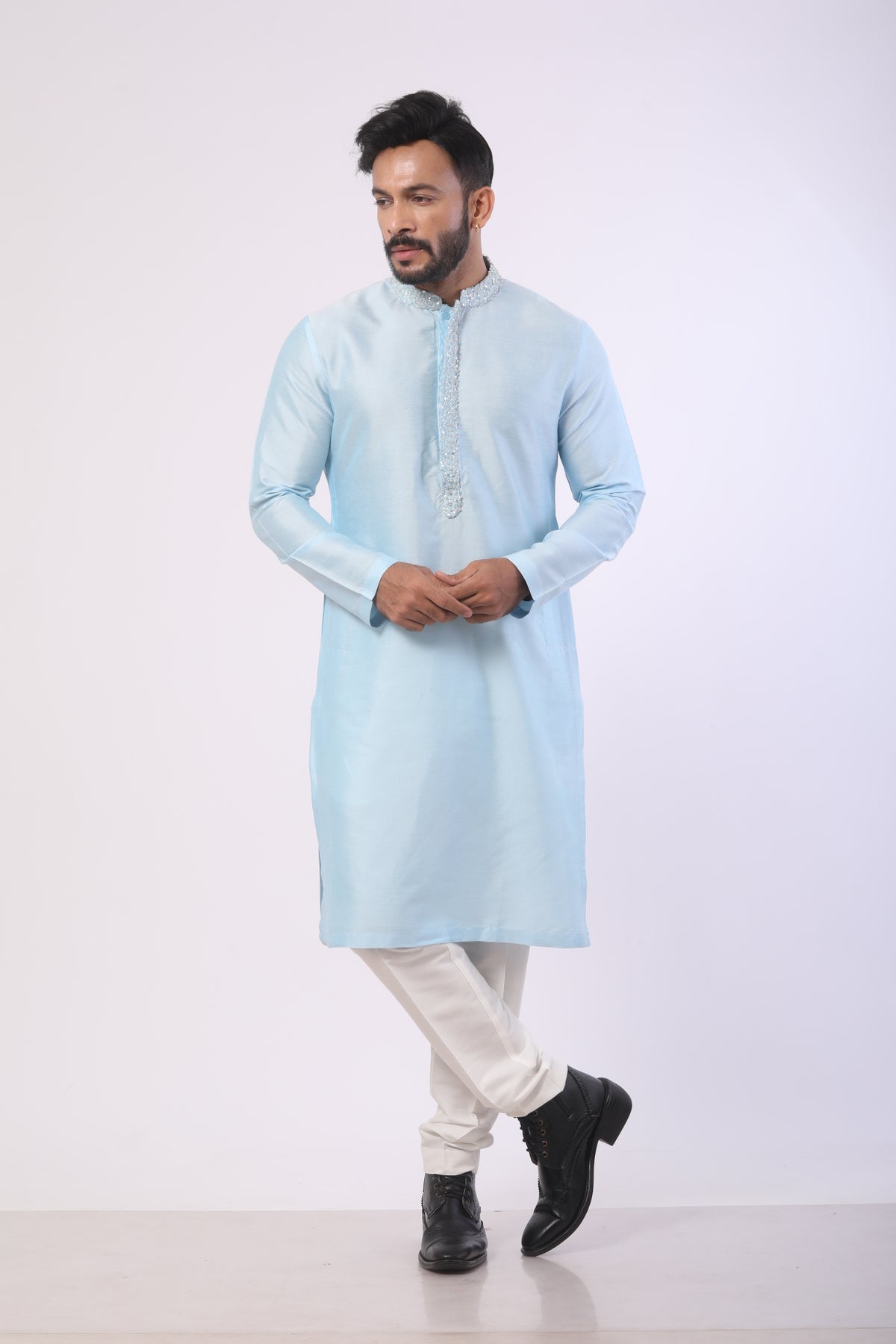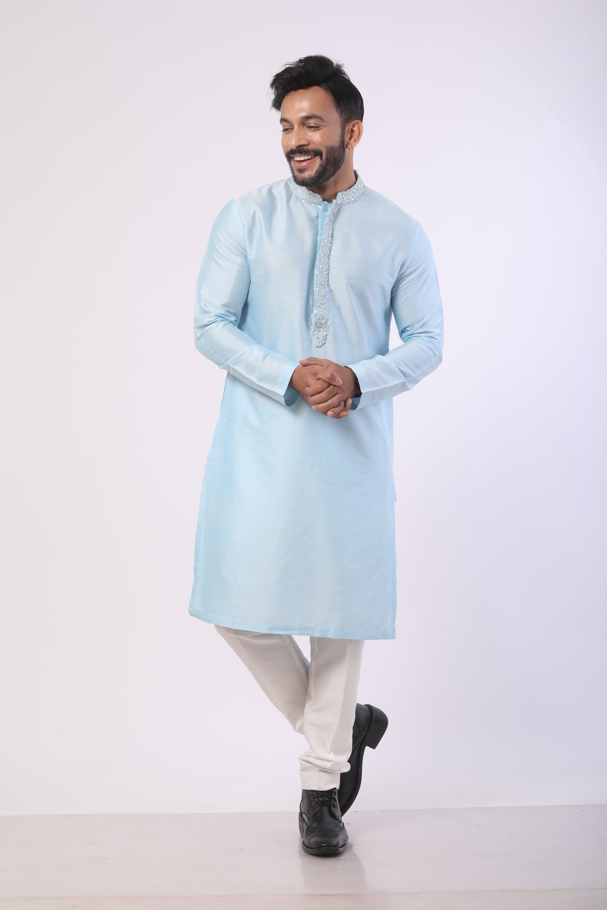 Color: Sea-blue kurta with white pants